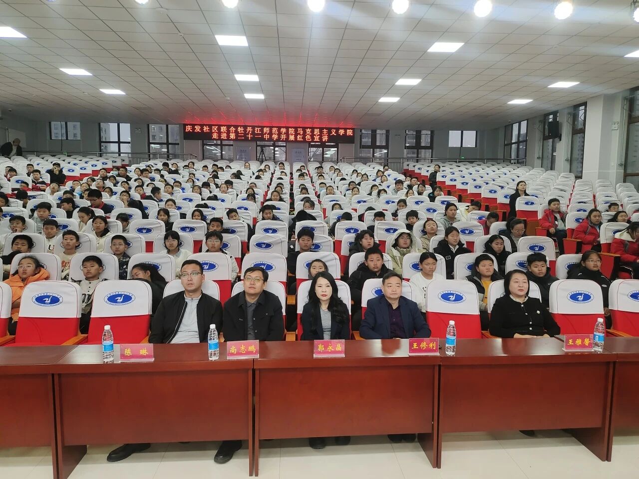 为纪念中国人民抗日战争暨世界反法西斯战争胜利80周年,深入落实立德树人根本任务,引导青年学子铭记历史、坚定理想信念,11月20日,牡丹江师范学院马克思主义学院联合庆发社区前往牡丹江市第二十一中学开展中国共产党人精神谱系宣讲活动。本次宣讲活动由牡丹江师范学院马克思主义学院主办,学院负责人尚志鹏书记统筹协调,活动面向牡丹江市第二十一中学初一全体同学。马克思主义学院党委副书记尚志鹏、红色教育培训中心主任王雅馨、牡丹江市第二十一中学德育负责人陈琳、牡丹江市第二十一中学郭永晶老师与王修利老师等五位老师出席参加此次宣讲活动。本次活动由我院25级马克思主义中国化研究专业贾美琪主持,“雪域先声”宣讲团成员李子怡、张诗雨、周燕、韩嘉烨四位同学进行宣讲。
