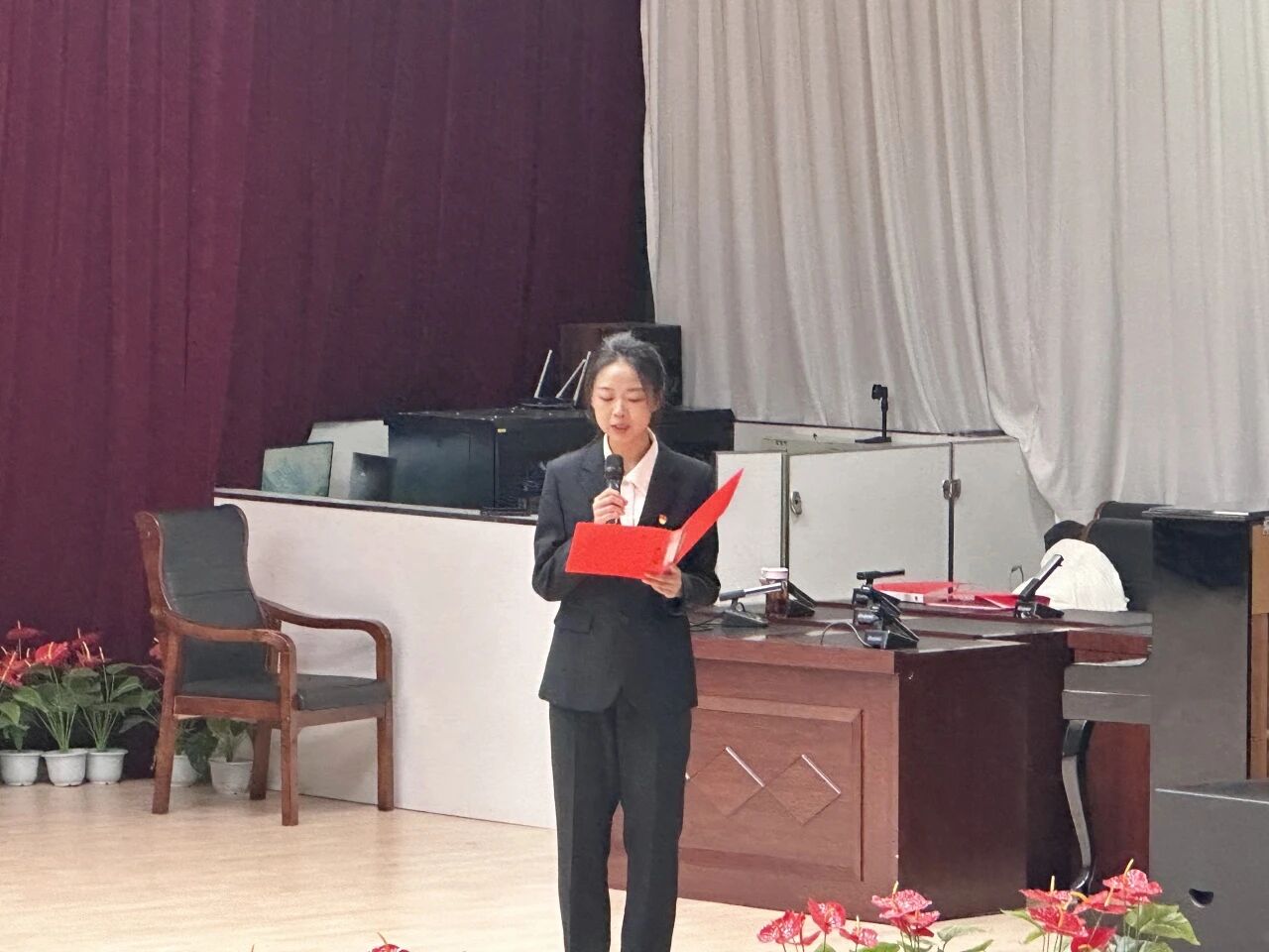 最后,韩嘉烨同学围绕“抗日战争暨世界反法西斯战争胜利80周年”开展专题宣讲。她以时间为脉络,从抗战爆发的历史背景、艰苦卓绝的战斗历程到最终胜利的伟大意义,进行了系统而生动的阐述,生动再现了中国人民在中华民族危亡之际,同仇敌忾、众志成城,为争取民族独立和解放而浴血奋战的壮阔图景。同时,她强调中国战场作为世界反法西斯战争的东方主战场,为世界反法西斯战争的胜利作出了不可磨灭的巨大贡献,彰显了中华民族的责任与担当。