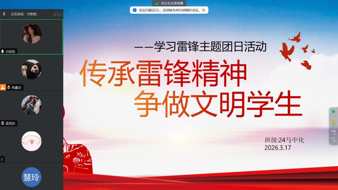 活动紧扣主题主线,以多元形式推动精神学习走深走实。各支部通过PPT精讲、经典诵读、影像观摩等多元形式,系统解读雷锋精神中爱岗敬业、助人为乐、无私奉献、勤俭节约的内涵,深入阐释新时代弘扬雷锋精神的现实意义与时代价值。部分支部以雷锋日记、雷锋事迹为切入点,通过领读分享、感悟交流,让团员沉浸式感受雷锋同志的崇高品德与精神追求,引导团员结合马克思主义理论学习,探讨雷锋精神与社会主义核心价值观的内在联系,推动理论认知与精神领悟深度融合。