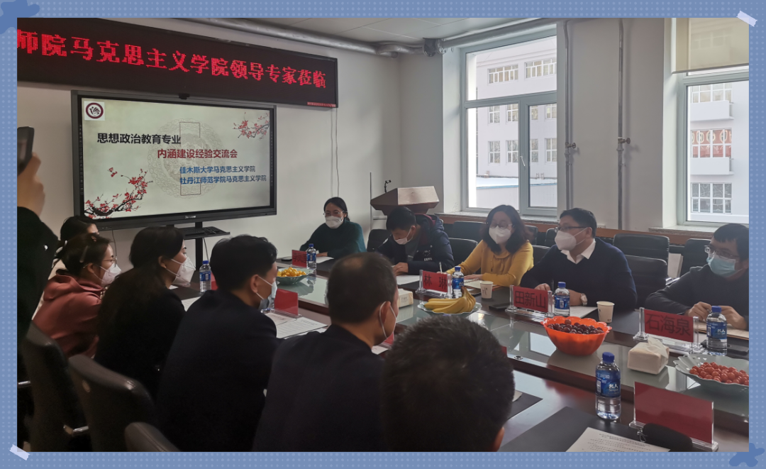 2023年1月9日马克思主义学院的党委书记田新山、副院长(行政负责人)林琳、思想政治教育系主任徐国超、实践部主任石海泉、青年教师刘帅等一行5人赴佳木斯大学马克思主义学院,围绕省重点马克思主义学院建设和思想政治教育专业师范认证进行调研交流。